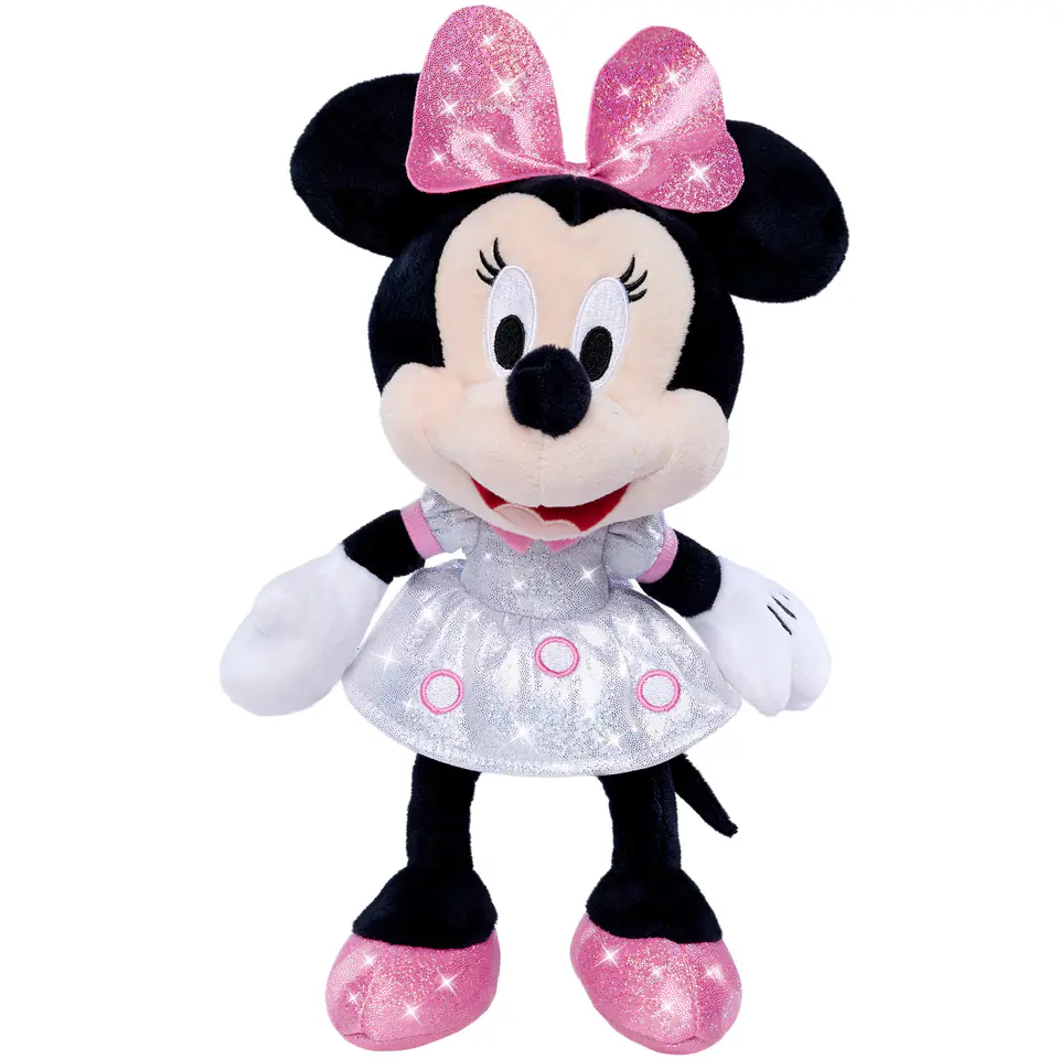 Urocze maskotki na licencji Disney'a wykonane zostały z najwyższej jakości pluszu. Odwzorowują popularne i ukochane przez dzieci postaci z bajek i filmów. Maskotki są miękkie i idealne do przytulania. Posiada błyszczącą sukienkę, białe rękawiczki, różowe błyszczące buciki oraz różową błyszczącą kokardkę. Myszka Mickey to postać z serialu animowanego "Klub Przyjaciół Myszki Miki". Minnie to urocza myszka, która jest narzeczonym Myszki Mickey.