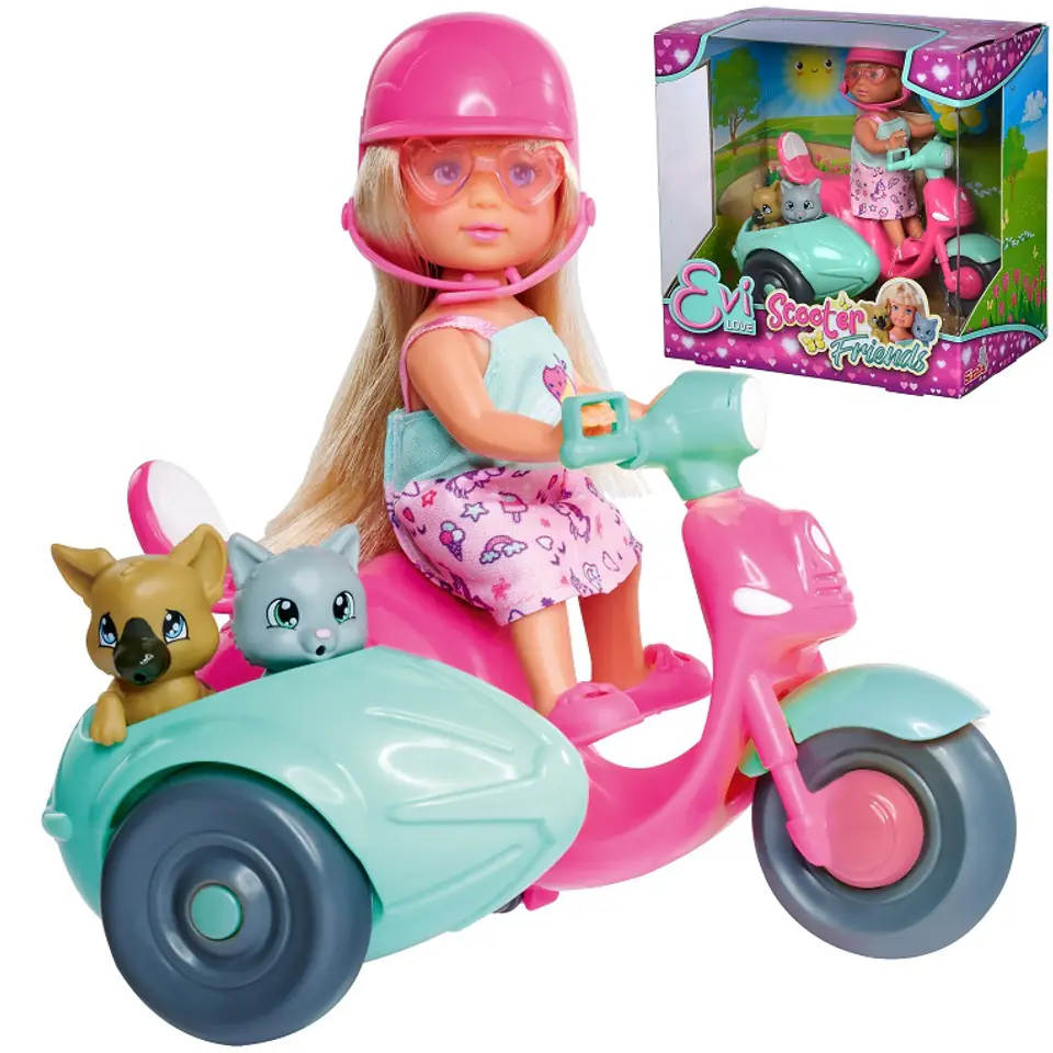 - - lalka Evi zabrała na przejażdżkę skuterem kotka i pieska
