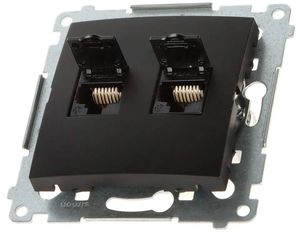 Simon 54 Gniazdo komputerowe podwójne RJ45 kategoria 6 z przesłoną przeciwkurzową moduł) czarny mat D62.01/4