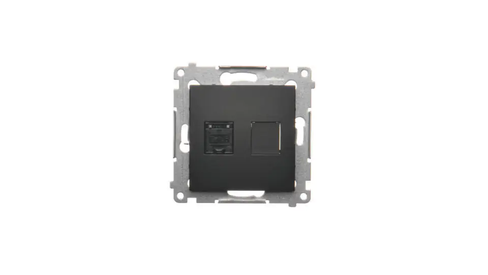 Simon 54 Gniazdo komputerowe pojedyncze RJ45 kategoria 6 z przesłoną przeciwkurzową moduł) czarny mat D61.01/4