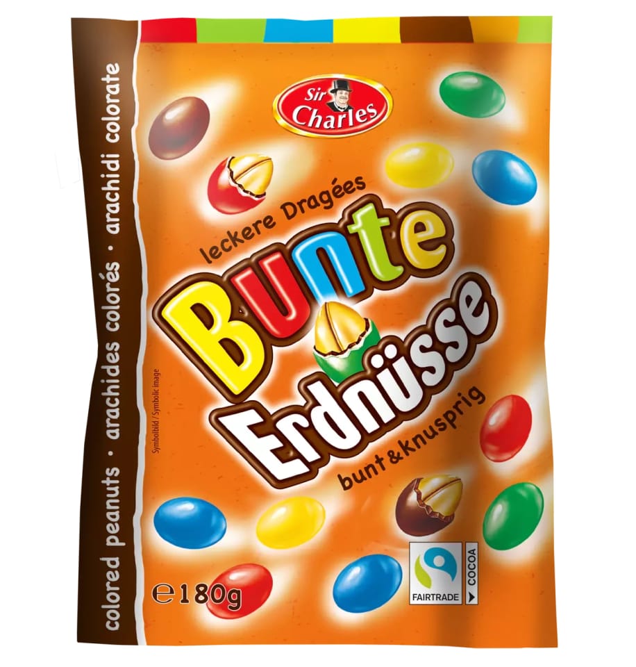 Oto Kolorowe Orzeszki od Sir Charles - prawdziwa uczta dla podniebienia! Orzeszki ziemne zanurzone w mlecznej czekoladzie i pokryte kolorową polewą cukrową to nie tylko przekąska, to prawdziwe arcydzieło smaku.