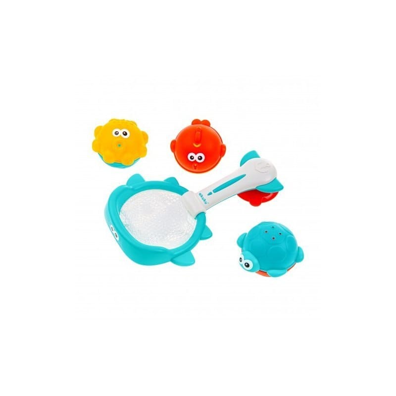 Dwufunkcyjny zestaw marki „akuku" do zabawy podczas kąpieli: - sitko do łowienia kulek - kosz do którego wrzucamy kulki (wystarczy zamontować go do kafelek lub na ścianę wanny) Idealna edukacyjna zabawka do kąpieli. Umili kąpiel każdego bobasa. Nauczy Twoje dziecko rozróżniania kolorów, kształtów oraz rozwinie koordynacje wzrokowo-ruchową. Zarówno elementy jak i siatka unoszą się na wodzie. Dodatkowo jest to doskonałe rozwiązanie dla rodziców, których pociecha boi się wody i nie lubi kąpieli. Pewny sposób na oswajanie maluszka z wodą poprzez zabawę. Wszystkie elementy posiadają otworki przez które przelatuje woda. Super rozrywka dla malucha. Złowienie wszystkich zwierzątek do sitka nie jest łatwe, ponieważ przy próbie łapania stworzenia zmieniają swoje położenie. Jeszcze trudniejsze to trafianie piłeczkami do kosza, która rozwinie u malucha umiejętność celności. Wykonane z bezpiecznych, wysokiej jakości materiałów, nie zawierają bisfenolu A. W zestawie znajduje się sitko - kosz i 3 kulki zwierzątka. A0456
