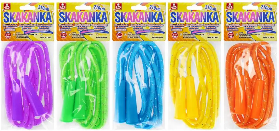 Zalety produktu: można skakać na wiele sposobów, pobudza koordynację ruchową, skakanka wykonana z kolorowego sznurka, występuje w pięciu wersjach kolorystycznych: pomarańczowym,fioletowym, żółtym, zielonym, niebieskim. Skakanki to jedno z tych ponadczasowych rozwiązań, które zawsze się sprawdzają w walce o zdrową i szczupłą sylwetkę. Na Skakance MEGA CREATIVE można skakać na wiele różnych sposobów Zawartość zestawu: skakanka. Wymiary/waga/baterie: wymiary produktu dł. cm : 210 cm, wymiary opakowania dł. x wys. cm : 11x28, waga produktu bez opakowania kg : 0,04 kg, waga produktu w opakowaniu kg : 0,05 kg, nie wymaga zasilania bateriami. Zabawka przeznaczona dla dzieci w wieku: 3 . Pakowana w woreczek z zawieszką.W kartonie po 288szt.