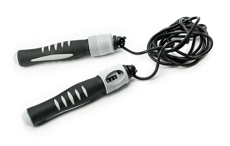 SKAKANKA Z LICZNIKIEM ALLRIGHT Skakanki z licznikiem to popularne narzędzie fitness, które umożliwia śledzenie liczby wykonanych podskoków podczas treningu. Licznik jest umieszczony na uchwytach skakanki. Ta funkcja jest przydatna dla osób, które chcą monitorować swoje postępy i kontrolować intensywność treningu. Doskonały przyrząd treningu wielu ćwiczeń aerobowych, wzmacniająco-wydolnościowych. Specyfikacja: - Uchwyty pokryte warstwą antypoślizgowego tworzywa. - Licznik obrotów wbudowany w rączkę. Możliwość zerowania wyniku. - Linka PVC (ok 280cm) z możliwością regulacji długości.