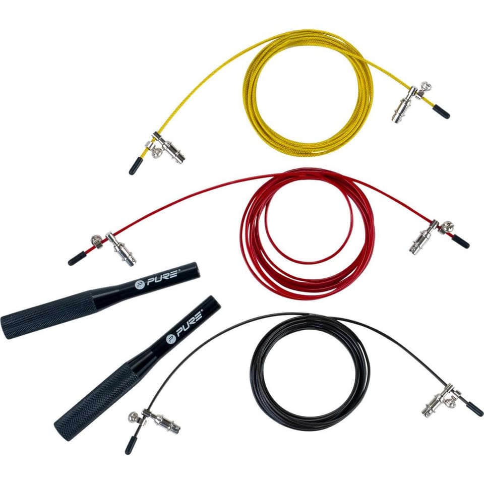Parametry:- Długość linki ok.: 302 cmDługość uchwytów ok.:: 17 cmŚrednica uchwytów ok.: 1,5 cmŚrednica linki ok: 6 mm (czarna),4mm (czerwona),2 mm(żółta)Kolor: czarny, czerwony, żółtyRegulacja długości: takMateriał: PVC, stalRodzaje linek: czarna 110 gr (heavy), czerwona 80 gr (medium), żółty 65 gr (light)Wymiary opakowania (blister): 18 x 4 x 24,5 cm (szer. x gł. x wys.)Waga netto: 0,400 kgWaga brutto: 0,411 kgMarka: Pure 2 Improve