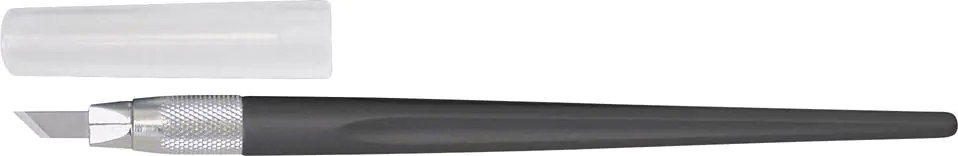 Wykonanie: z czarnym uchwytem z tworzywa sztucznego. Z mechanizmem obrotowym ułatwiającym wymianę ostrza. Dostawa wraz z 5 ostrzami, 45° szlifowany, z 5 szlifowanymi ostrzami 30°.