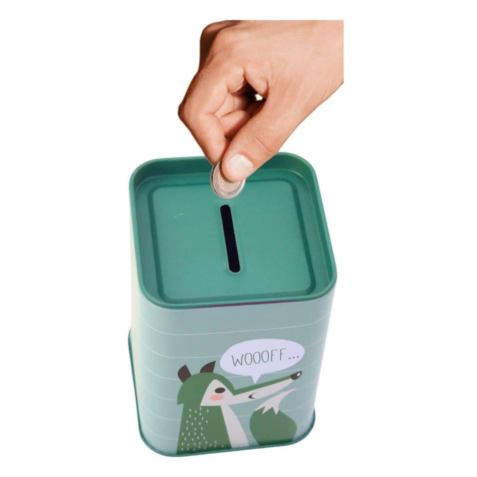 Na górze skarbonki znajduje się otwór na monety, który ułatwia wrzucanie pieniędzy i zachęca dziecko do regularnego oszczędzania. Dzięki swojemu uroczemu wzornictwu z liskiem oraz estetycznemu wykończeniu, skarbonka doskonale komponuje się z wystrojem dziecięcego pokoju, pełniąc nie tylko funkcję praktyczną, ale także dekoracyjną.
