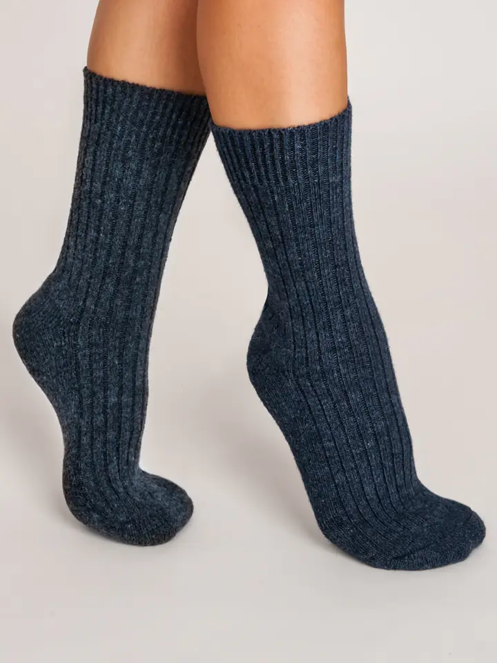 Zimowe skarpety damskie z wełną wykonane z przyjemnych dla ciała surowców. Skarpety ozdobione fantazyjnym splotem. Posiadają nieuciskający ściągacz oraz płaski szew. Skład: 60% akryl, 30% wełna, 5% poliamid, 5% elastan.