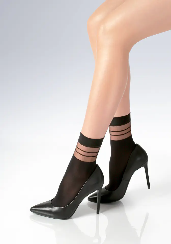 Wzorzyste skarpetki damskie o grubości 40 den. Skład: 92% poliamid, 4% elastan, 4% poliester.