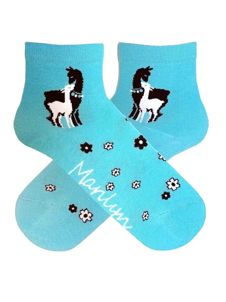 Skarpetki damskie z wzorem alpaki. Wykonane z naturalnej bawełny najwyższej jakości. Płaski i miękki szew zapewni komfort noszenia. Skład: 80% bawełna, 15% poliamid, 5% elastan.
