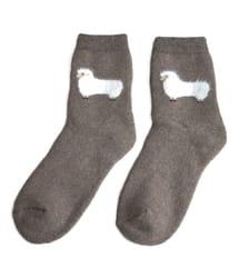 Ciepłe skarpetki z angory z misiem w okolicy kostki. Dobrze dopasowana górna część z mocną gumką utrzymuje skarpetkę na miejscu, bez ucisku i zsuwania. Skład: 60% poliester, 23% acryl, 7% wiskoza, 5% wełna, 3% angora, 2% elastan.