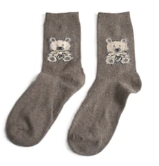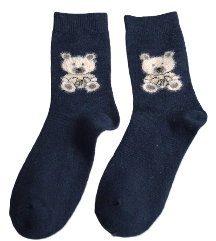 Ciepłe skarpetki z angory z misiem w okolicy kostki. Dobrze dopasowana górna część z mocną gumką utrzymuje skarpetkę na miejscu, bez ucisku i zsuwania. Skład: 60% poliester, 23% acryl, 7% wiskoza, 5% wełna, 3% angora, 2% elastan.