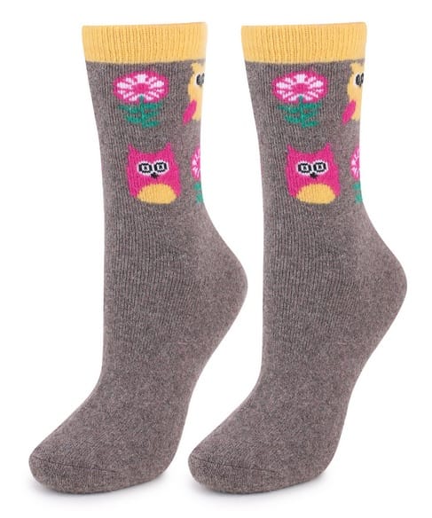 Ciepłe skarpetki z angory z frotą. Skarpetki są miękkie i bardzo wygodne, ozdobione kolorowym wzorem. Skład: 60% poliamid, 23% akryl, 7% wiskoza, 5% wełna, 3% angora, 2% elastan.