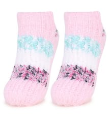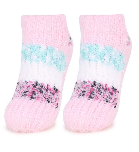 Grube i ciepłe skarpety damskie, posiadają antypoślizgową podeszwę. Ozdobione z tyłu uroczym pomponem. Skład: 50% akryl, 50% poliamid.