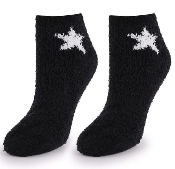Skarpety z froty mięciutkie z ozdobną gwiazdką. Ciepłe, wyjątkowo przyjemne w dotyku. Posiadają antypoślizgowy spód. Idealne na mroźną zimową porę. Skład: 99% poliamid, 1% elastan.