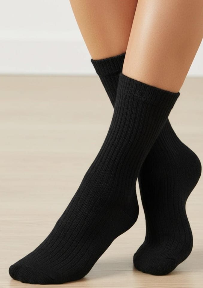 Damskie skarpetki z dodatkiem kaszmiru, niezwykle ciepłe i miękkie w dotyku. Klasyczny, ozdobny prążkowany splot. Skład: 60% wiskoza, 25% poliamid, 15% kaszmir.