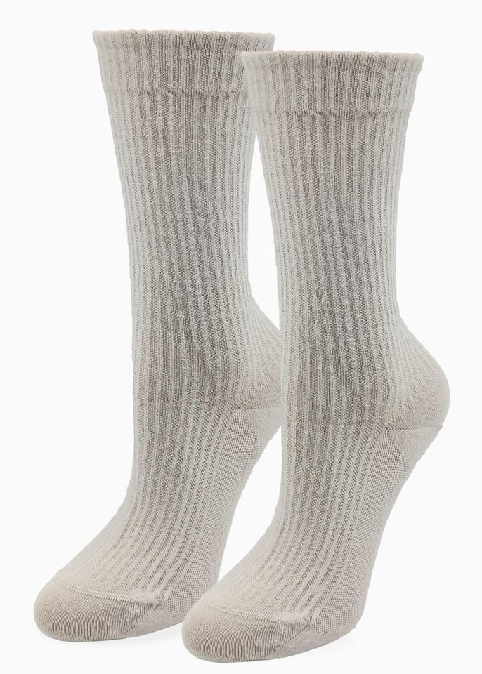 Damskie skarpetki z dodatkiem kaszmiru, niezwykle ciepłe i miękkie w dotyku. Klasyczny, ozdobny prążkowany splot. Skład: 60% wiskoza, 25% poliamid, 15% kaszmir.