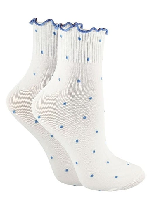 Skarpetki damskie z wysokogatunkowego materiału z bawełną. Oryginalny i modny designe, płaski szew, elastyczny, ozdobny ściągacz. Skład: 80% bawełna, 15% poliamid, 5% elastan.