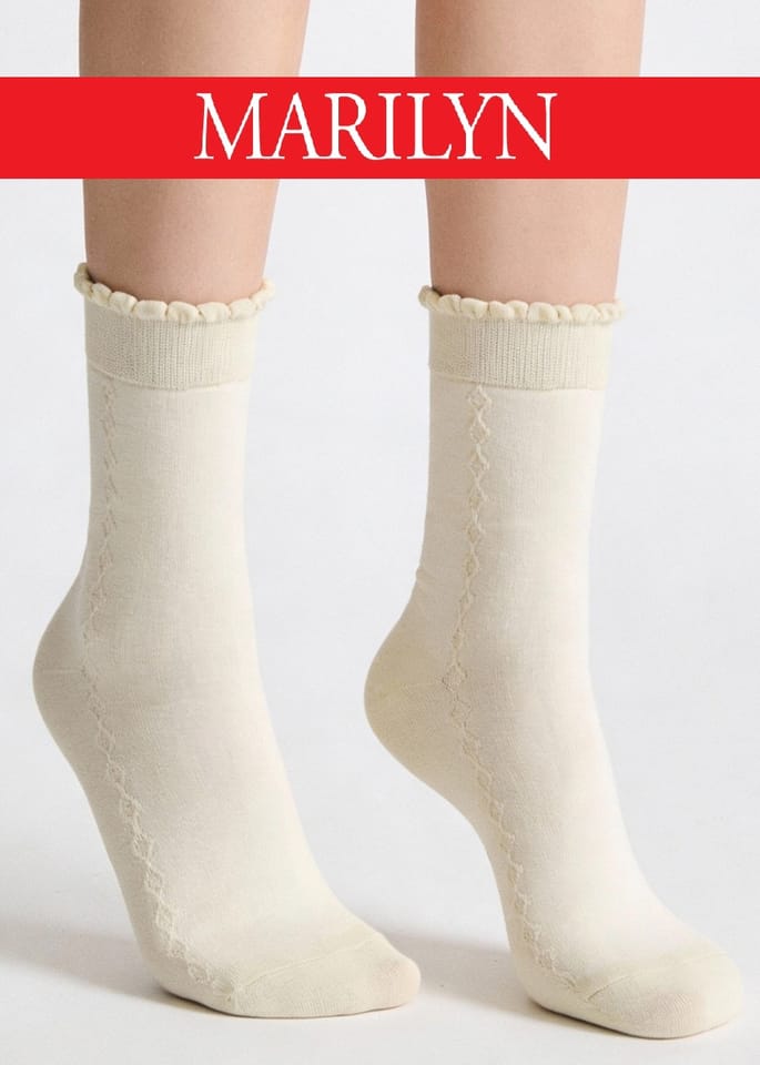 Skarpetki damskie z wysokogatunkowego materiału z bawełną. Oryginalny i modny designe, płaski szew, elastyczny ściągacz, wyższy krój. Skład: 80% bawełna, 15% poliamid, 5% elastan.