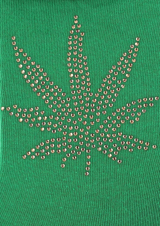 Skarpetki damskie z błyszczącym liściem konopi. Wykonane z naturalnej bawełny najwyższej jakości. Płaski i miękki szew zapewni komfort noszenia.Skład: 75% bawełna, 20% poliamid, 5% elastan.