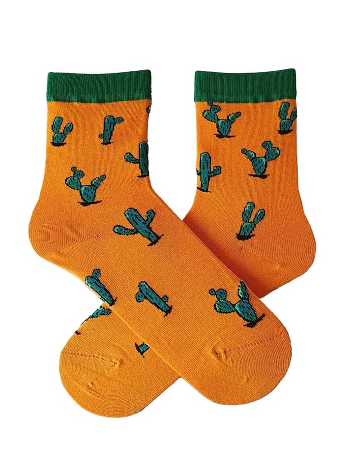 Skarpetki damskie z grafiką kaktusów. Wykonane z naturalnej bawełny najwyższej jakości. Płaski i miękki szew zapewni komfort noszenia. Skład: 80% bawełna, 15% poliamid, 5% elastan.