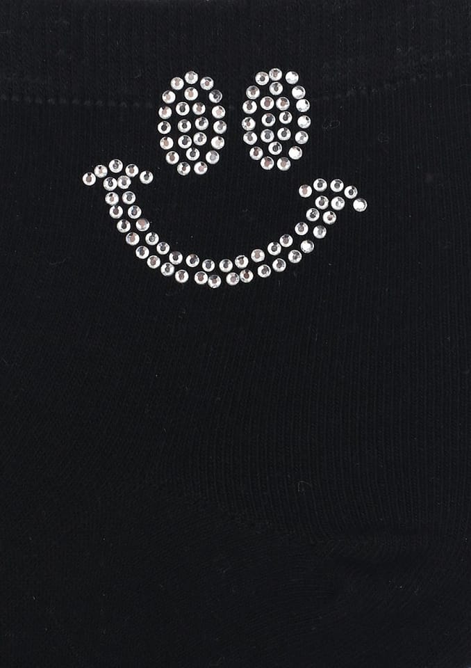 Skarpetki damskie z uśmiechniętą buzią z cyrkonii. Wykonane z naturalnej bawełny najwyższej jakości. Płaski i miękki szew zapewni komfort noszenia. Skład: 75% bawełna, 20% poliamid, 5% elastan.