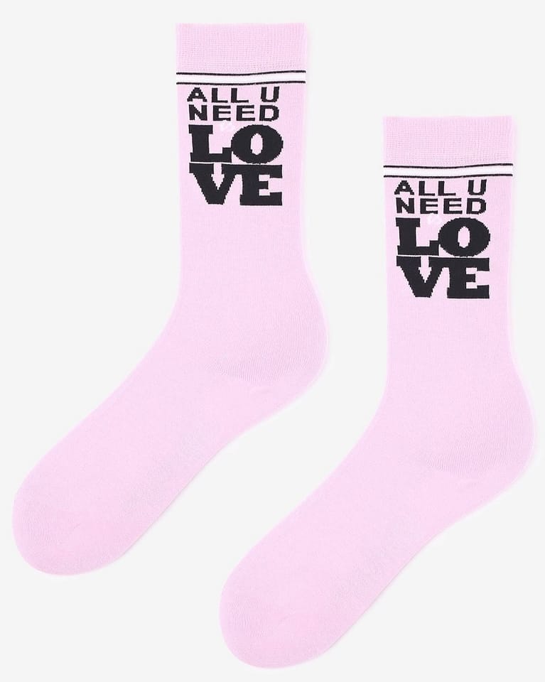 Skarpetki damskie z napisem. Wykonane z naturalnej bawełny najwyższej jakości. Płaski i miękki szew zapewni komfort noszenia. Skład: 80% bawełna, 15% poliamid, 5% elastan.