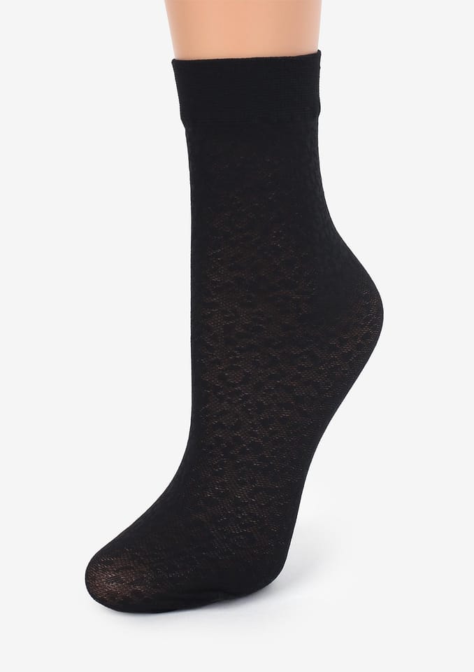 Skarpetki damskie o grubości 20 den w cętki panterki. Posiadają wygodny ściągacz. Idealne na wiosnę i lato, zapobiegają otarciom stopy w obuwiu. Skład: 92% nylon, 8% elastan.