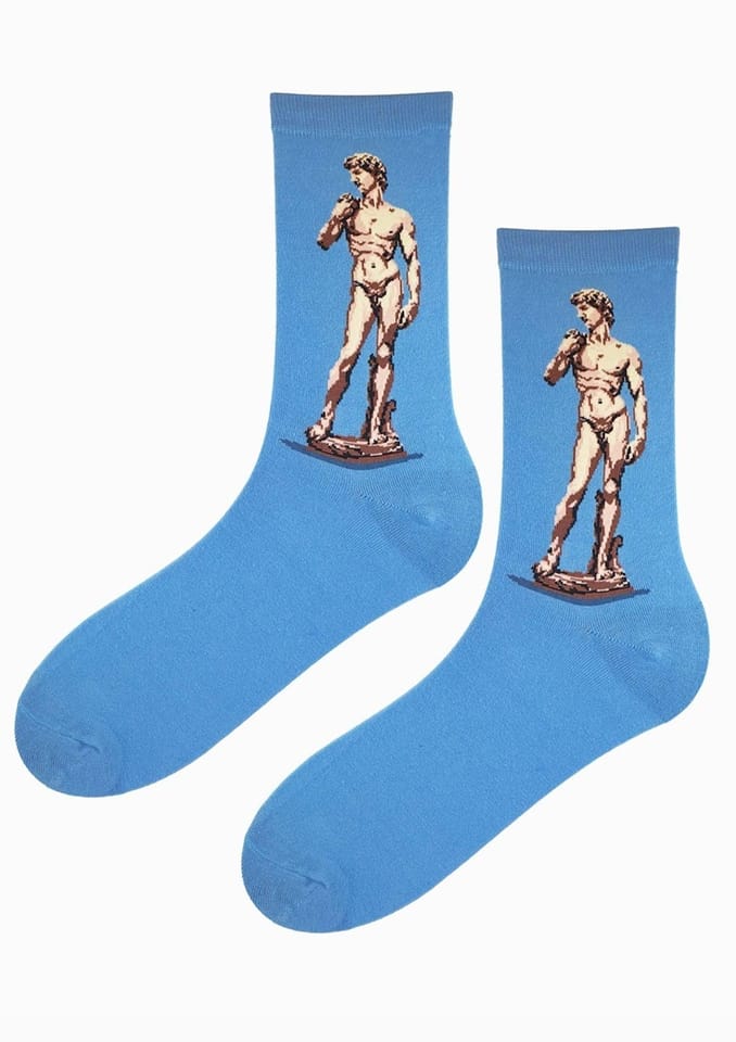 Skarpetki męskie w fantazyjny wzór z miękkiej, bawełny gwarantują komfort, przewiewność i przyjemne otulenie stóp przez cały dzień. Ściągacz u góry – stabilne trzymanie bez ucisku, długość za kostkę. Skład: 80% bawełna, 15% poliamid, 5% elastan.