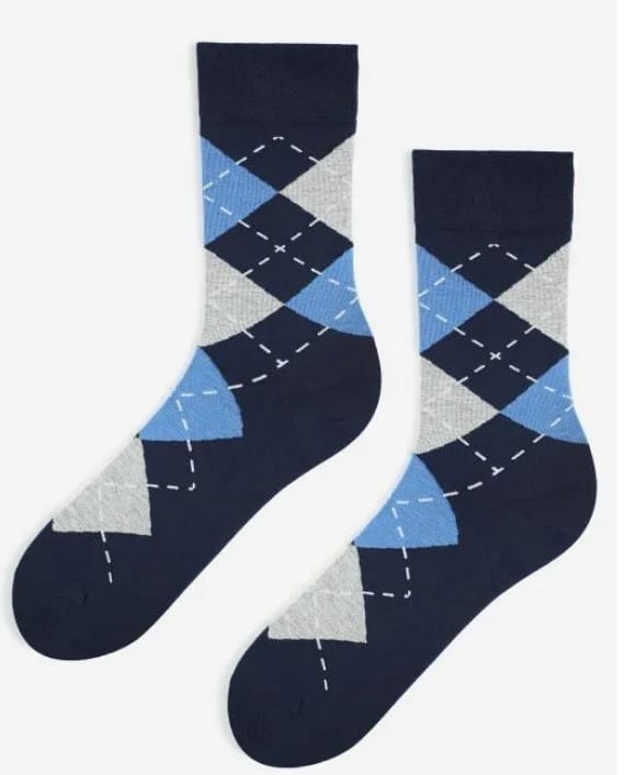 Skarpety męskie w romby. Wykonane z naturalnej bawełny najwyższej jakości. Płaski i miękki szew zapewni komfort noszenia. Takie skarpety są idealne na prezent. Skład: 80% bawełna, 15% poliamid, 5% elastan.