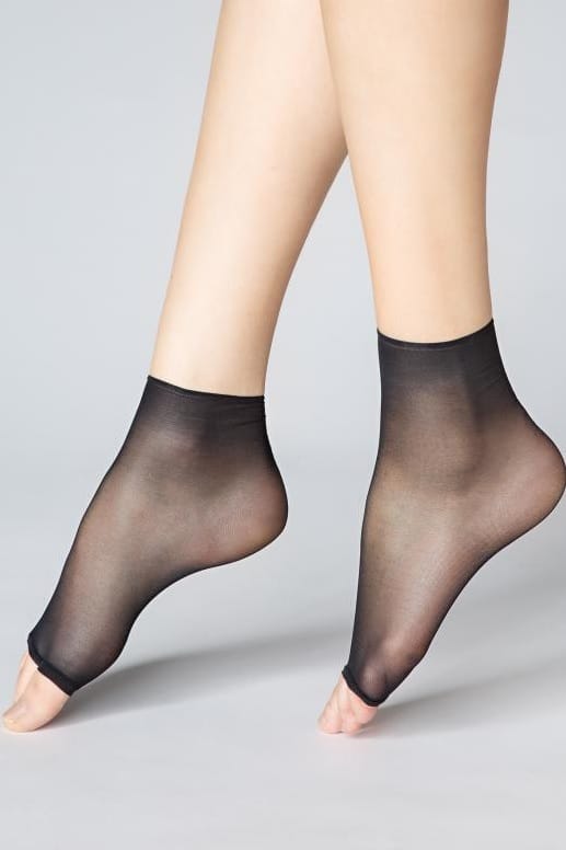 Skarpetki transparentne odsłaniające palce. Komfortowe, z nieuciskającym ściągaczem. Skład: 84% poliamid, 16% elastan.