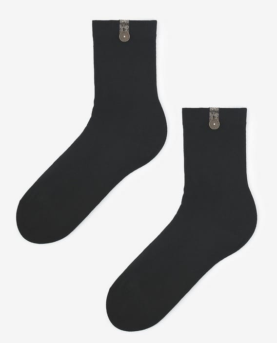 Gładkie skarpetki damskie ozdobione po boku błyszczącą tasiemką z zegarkiem. Wykonane z naturalnej bawełny najwyższej jakości. Płaski i miękki szew zapewni komfort noszenia. Skład: 80% bawełna, 15% poliamid, 5% elastan.