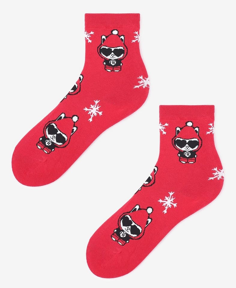 Skarpetki damskie z postacią oraz płatkami śniegu. Wykonane z naturalnej bawełny najwyższej jakości. Płaski i miękki szew zapewni komfort noszenia.Skład: 80% bawełna, 15% poliamid, 5% elastan.