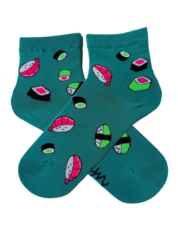 Skarpetki damskie z sushi. Wykonane z naturalnej bawełny najwyższej jakości. Płaski i miękki szew zapewni komfort noszenia. Skład: 80% bawełna, 15% poliamid, 5% elastan.