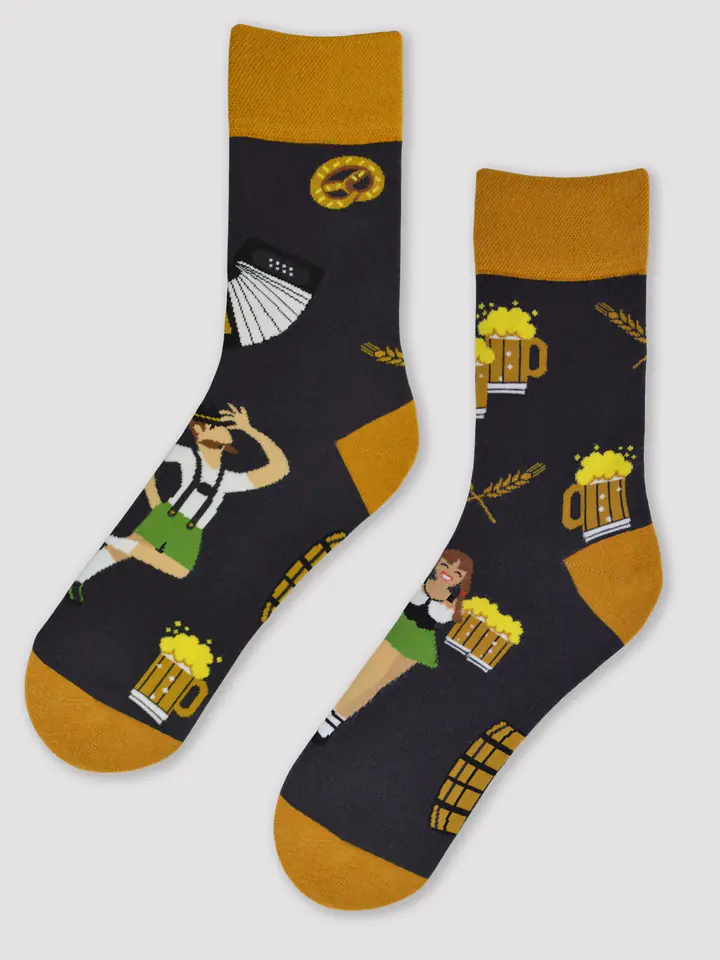Męskie wzorzyste skarpetki wykonane z przyjemnej bawełny. Skarpetki z ciekawym wzornictwem. Posiadają komfortowy ściągacz oraz płaski szew. Skład: 80% bawełna, 18% poliamid, 2% elastan.