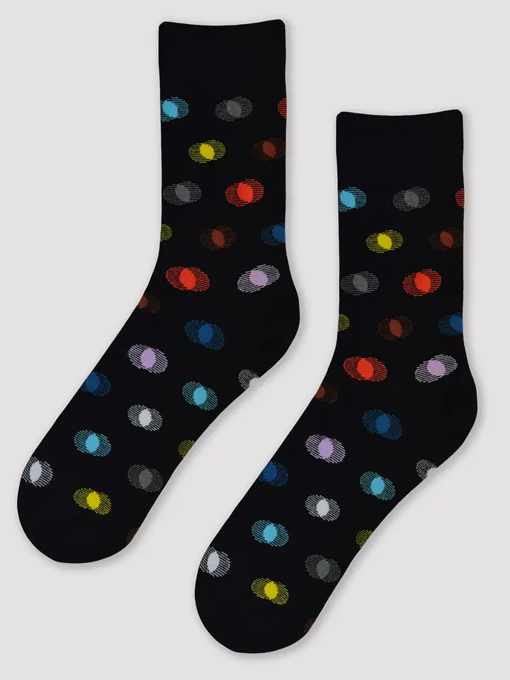 Męskie wzorzyste skarpetki wykonane z przyjemnej bawełny. Skarpetki z ciekawym wzornictwem. Posiadają komfortowy ściągacz oraz płaski szew. Skład: 80% bawełna, 18% poliamid, 2% elastan.