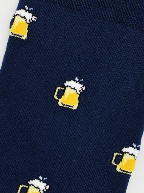Męskie wzorzyste skarpetki wykonane z przyjemnej bawełny. Skarpetki z ciekawym wzornictwem. Posiadają komfortowy ściągacz oraz płaski szew. Skład: 80% bawełna, 18% poliamid, 2% elastan.