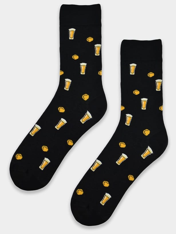 Męskie wzorzyste skarpetki wykonane z przyjemnej bawełny. Skarpetki z ciekawym wzornictwem. Posiadają komfortowy ściągacz oraz płaski szew. Skład: 80% bawełna, 18% poliamid, 2% elastan.