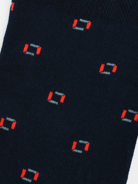 Męskie wzorzyste skarpetki wykonane z przyjemnej bawełny. Skarpetki z ciekawym wzornictwem. Posiadają komfortowy ściągacz oraz płaski szew. Skład: 80% bawełna, 18% poliamid, 2% elastan.
