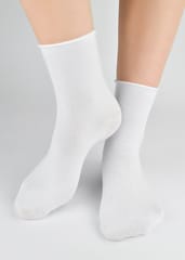 Damskie skarpety gładkie, wykonane z wysokiej jakości materiałów. Płaskie szwy i brak ściągacza zapewniają komfort i wygodę jednocześnie nie zsuwając się z nogi. Skład: 77% bawełna, 20% poliamid, 3% elastan.