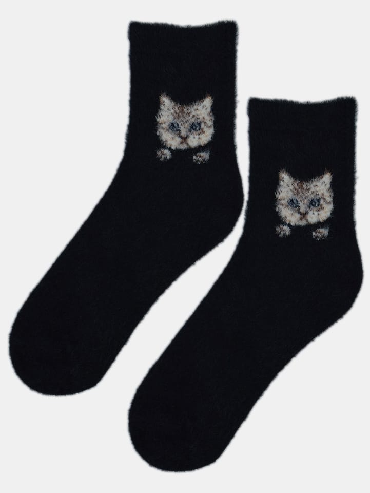 Puchate skarpetki damskie idealnie sprawdzą się podczas chłodnych, jesienno-zimowych dni. Wykonane z puszystego materiału typu soft zapewnią ciepło oraz komfort podczas ich noszenia. Ozdobione wzorem w kotki. Skład: 95% poliamid, 5% elastan.