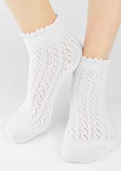Starannie wykonane skarpetki łączace w sobie jakość, estetykę i funkcjonalność. Nieuciskający, ozdobny ściągacz, efektowny, ażurowy wzór i płaskie szwy. Skład: 75% bawełna, 22% poliamid, 3% elastan.