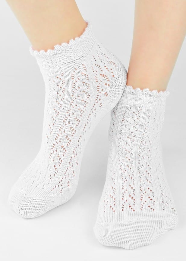 Starannie wykonane skarpetki łączace w sobie jakość, estetykę i funkcjonalność. Nieuciskający, ozdobny ściągacz, efektowny, ażurowy wzór i płaskie szwy. Skład: 75% bawełna, 22% poliamid, 3% elastan.