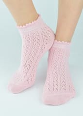 Bawełniane skarpetki dziecięce z miękkiej dzianiny. Efektowny, ażurowy wzór i płaskie szwy. Nieuciskający, ozdobny ściągacz. Skład: 75% bawełna, 22% poliamid.