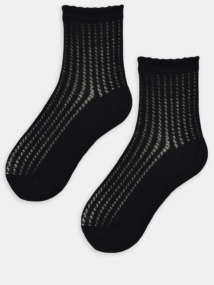 Jedwabne, wygodne, jednolite kolorystycznie skarpetki damskie z miękkiej i przyjemnej dla skóry dzianiny w drobny wzorek. Nieuciskający ściągacz. Skład: 75% wiskoza,15% poliamid, 6% jedwab, 4% elastan.