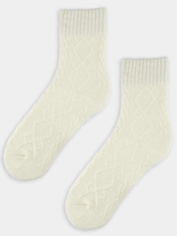 Ciepłe skarpety damskie z dodatkiem wełny. Delikatne tloczenie wzoru geometrycznego. Miękkie i przyjemne w dotyku, posiadają nieuciskający ściągacz.Skład: 45% akryl, 40% poliester, 10% wełna, 5% elastan