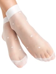Komfortowe skarpetki dziewczęce z nieuciskającym ściągaczem,w drobne kropki. W opakowaniu dwie pary. Skład: 92% polyamide, 8% elastane.