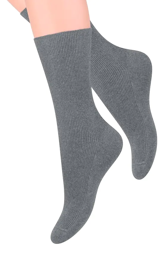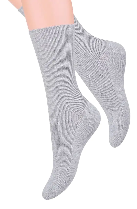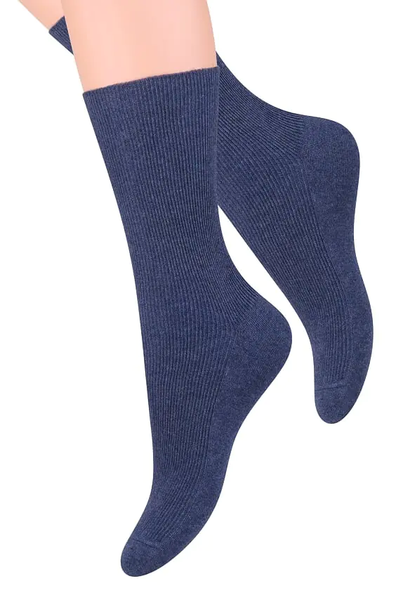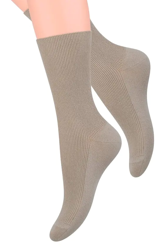 Gładkie bezuciskowe skarpety damskie z serii zdrowotnych. Umożliwiają swobodny przepływ krwi. Dostępne w kilkunastu stonowanych kolorach. Produkowane z najwyższej jakości bawełny.