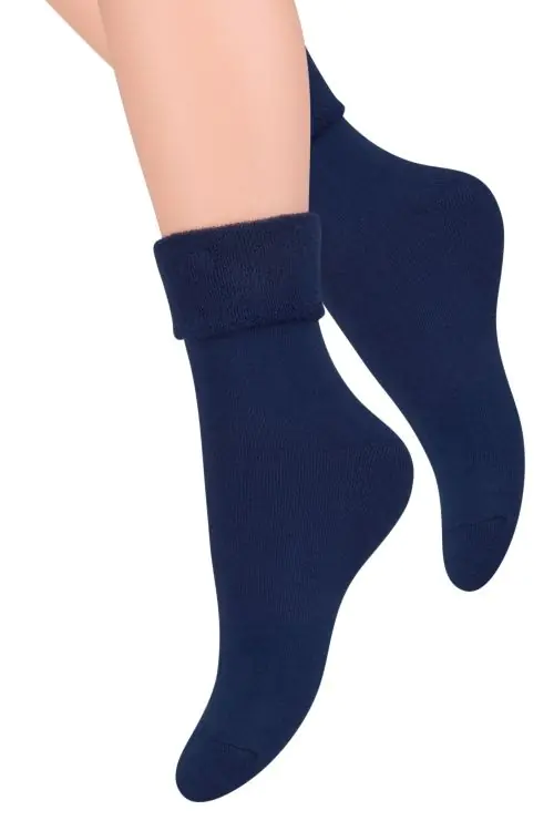 Gładkie damskie skarpety frotte, z wywijanym ściągaczem. Produkowane z najwyższej jakości bawełny. Miękkie i ciepłe, w sam raz na chłodne zimowe dni. Dostępne w kilku kolorach.