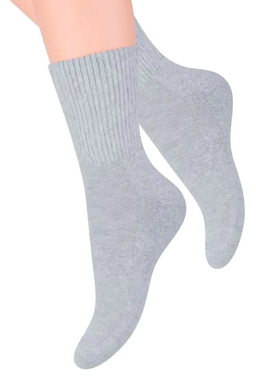 Damskie sportowe skarpety półfrotte z wysokim ściągaczem. Miękka frotte na podeszwie chroni wrażliwe części stopy, doskonale chłonie pot.